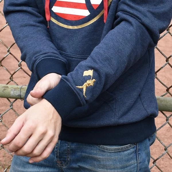 – Gold Flag Man embroidery on the left wrist
