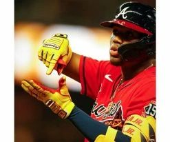 - Custom Yellow Batting Glove Colorway with Red and Blue Accents
